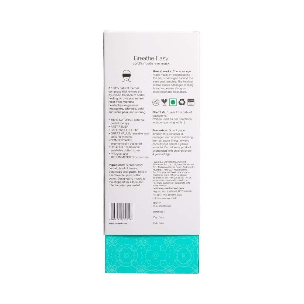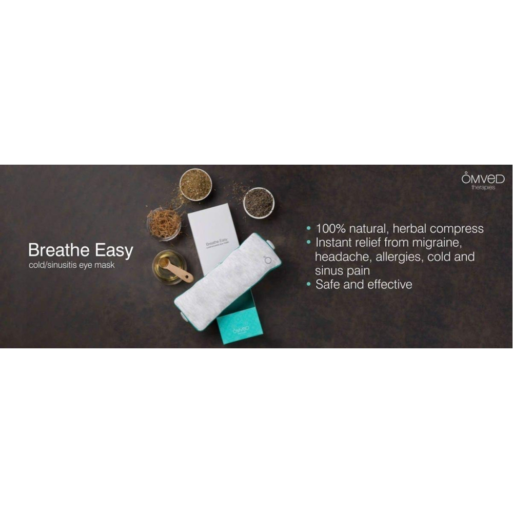 The Breathe Easy Eye Mask for cold and sinus is an ayurvedic 100% natural, safe and therapeutic herbal compress. As a moist herbal therapy, it helps to decongest, relax and heal effectively to offer you instant relief from sinus pain, migraines, headaches, allergies, cold and cough, insomnia etc.