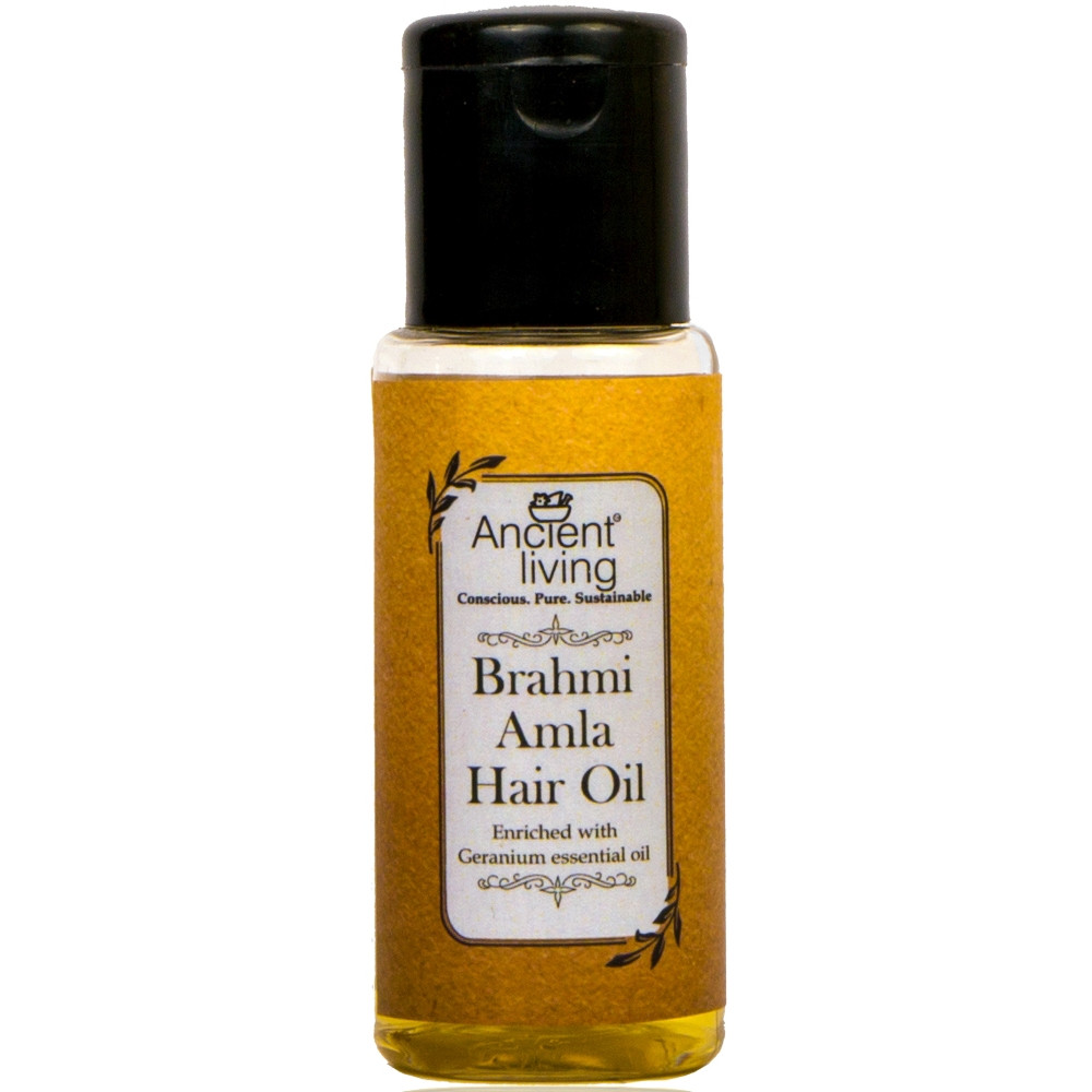 Ancient Living Brahmi and Amla hair oil is a potent hair oil processed as per the ancient method of Taila Pak Vidhi. It contains Brahmi and Amla infused into a rich virgin coconut oil. Ayurveda describes Amla as Shriphala and Amritphala, a fruit which is not only auspicious but also highly nourishing. Amla is said to be a divaushadi, which is a divine plant. It is considered as one of the best herbs for hair care because of high content of natural Vit C. Natural Coconut oil has a high content of lauric acid, which is highly beneficial for hair. It is said to possess Keshya properties, which means it promotes healthy hair. Brahmi, is an Adaptogenic Herb is known to be a Rejuvenator and relaxes mind. In Ayurveda it is recognised as a "Medhya" herb, which promotes focus. Geranium essential oil strengthens hair by nourishing and toning your scalp resulting in smooth, silky tresses. Taila Pak Vidhi - Ancient Living oils are prepared using Tail Pak Vidhi which is truly an alchemical process of oil preparation as described in Ayurveda. Precious fresh herbs are cleansed, dried and finely ground to a paste using water and boiled in Drava Dravya (milk or water) to extract a highly potent decoction. This decoction is added to coconut base oil known as Sneha Dravya and heated gently over many hours in specially designed containers to allow the moisture content to evaporate.The process is completed after desired consistency of appearance, smell is reached also known as Roopa, Varna, rasothpathi. The final product is filtered and stored. This process ensures that all the oil and water soluble compounds of the herbs are fully extracted and carefully preserved. This process spans over many days and is performed under the guidance of Ayurvedic experts.