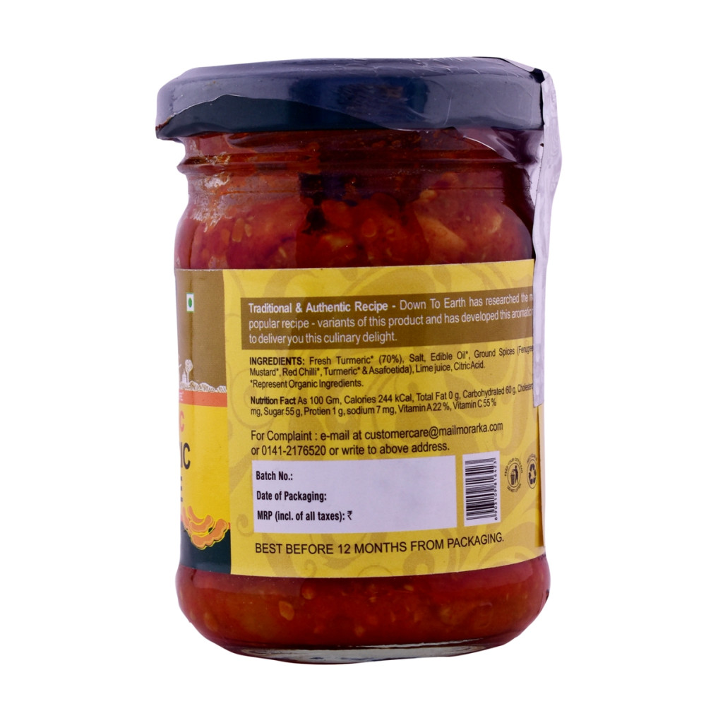 • Benefits: Some people find their meal unfinished without pickles; they really play an important role in Indian cuisine. This Organic Haldi Pickle is prepared from non GMO & unadulterated Turmeric - so the real advantages of this pickle is intact. Feel the traditional taste of homemade pickles in this bottle.