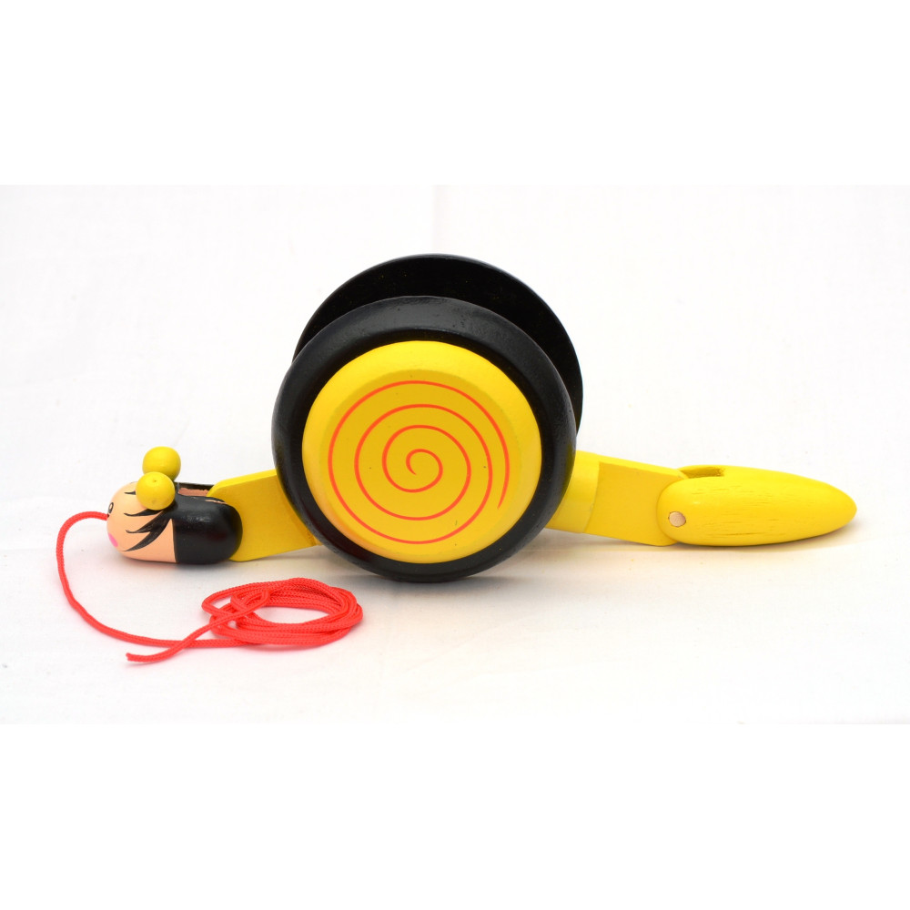 Snail is a very common terrestrial animal found everywhere. The babies encounter with them everywhere, at house garden, school campus, parks etc. Their leisurely movement creates a strong curiosity and attraction from the side of babies. The children want to carry the tiny animal with them, but they are forbidden to do so by their parents. They become depressed and melancholy. To serve this purpose, the miniature of that very creature, ‘Snail’, has been introduced to our rack. This is a basic activity type plaything. But the child pulls the snail using the string and they imagine that they are carrying the real animal. They acquire a concept of speed and their gross motor skills also become matured.