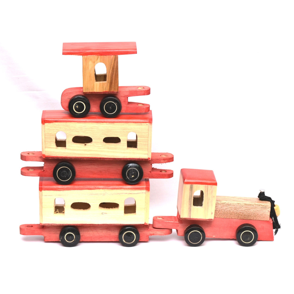 ‘Train’ this word raises mystical and strange feelings in our mind. Whenever we utter this word, our mind starts to imagine a rail car and our mind sets out towards the horizon. Children also have a type of feeling in their intellect. They are curiously attracted to the rail cars and engines. May be, the toddlers have a hidden wish in their mind to be gifted with a toy having a structure like train. This product ‘Train’ will without doubt serve this purpose. This toy is an activity toy having a pull car like structure with a string. The gross motor skill of the baby will be developed and the toddler will also be able to mature the concept of speed.