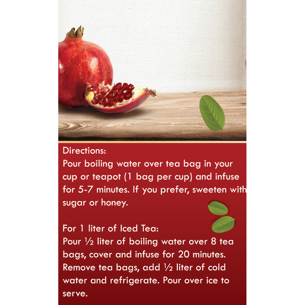Ingredients: Moringa Oleifera Leaf, Hibiscus Petals, Licorice Root, Dried Pomegranate Pieces, Natural Pomegranate Flavor
