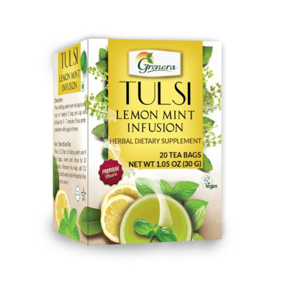 Grenera Organic Tulsi Lemon Mint Infusion Tea - 20 Tea Bags