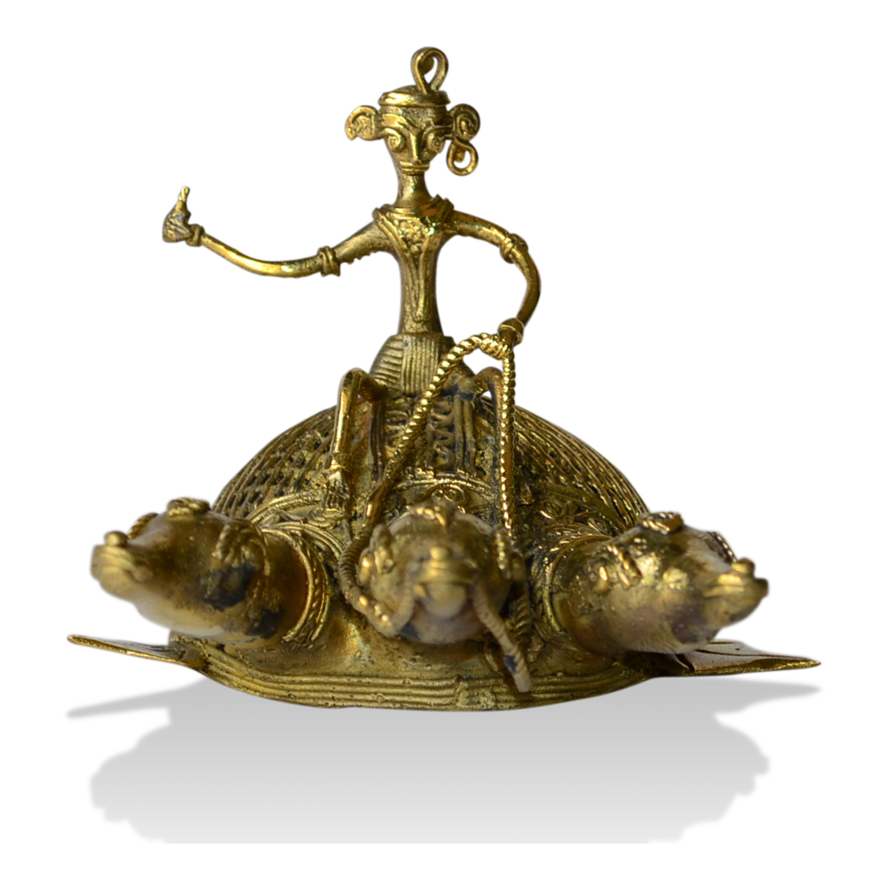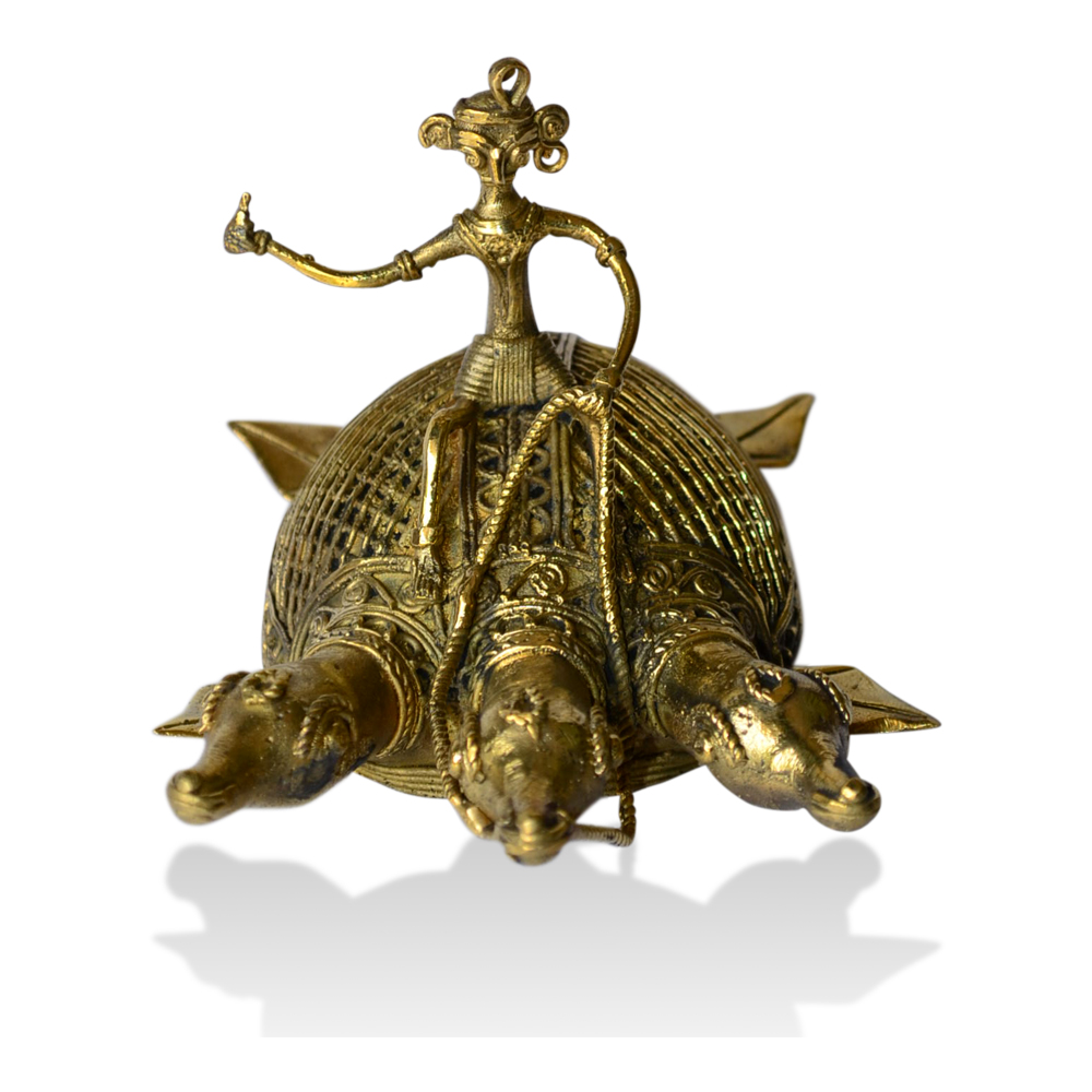 Brass Metal Craft (Dokra) 3 Faced Tortoise with Rider