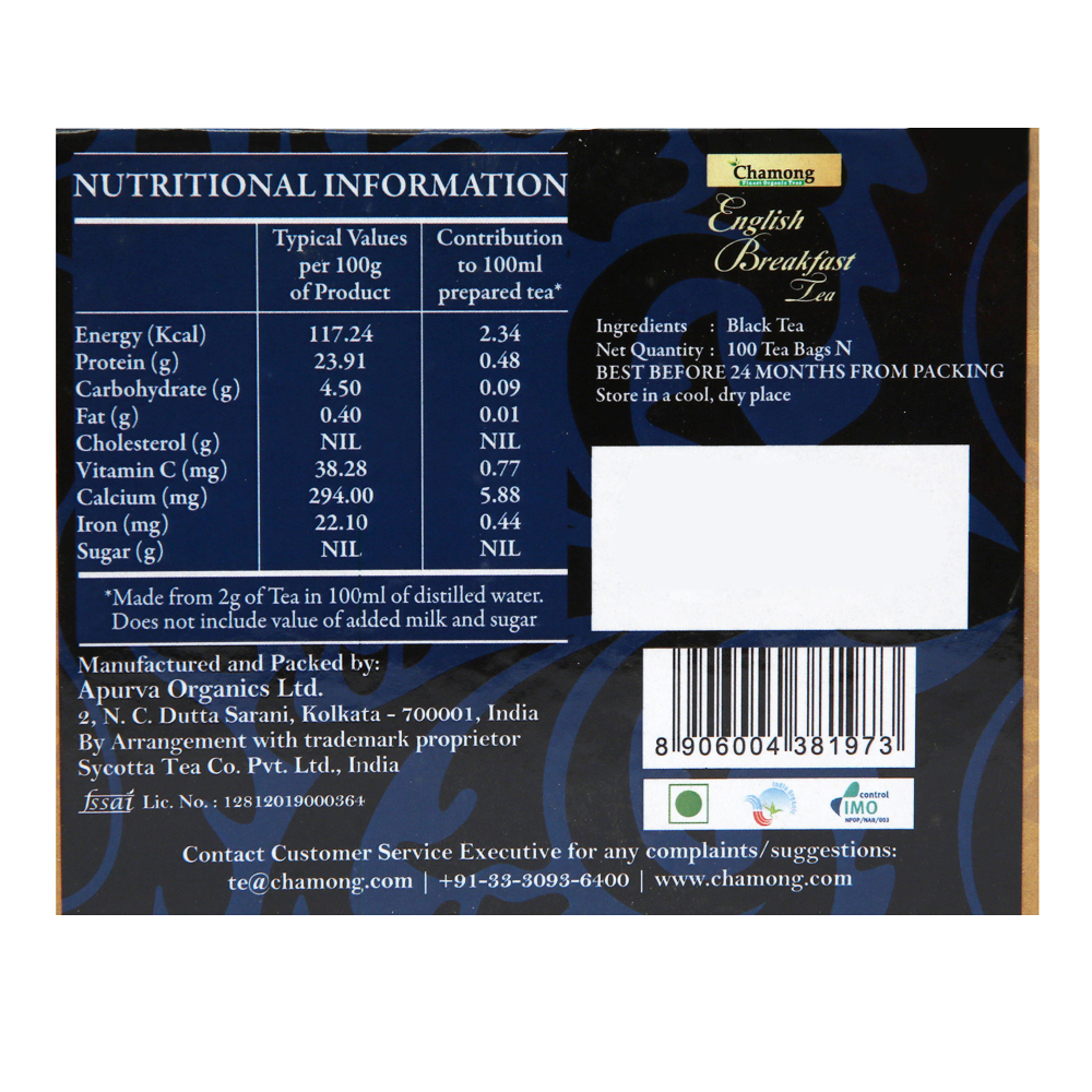 Chamong Organic English Breakfast - 100 Tea Bags