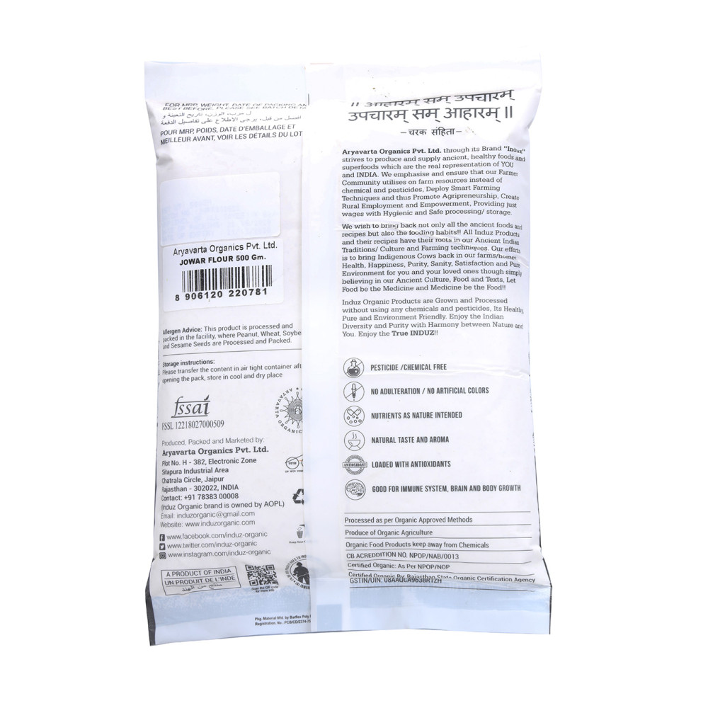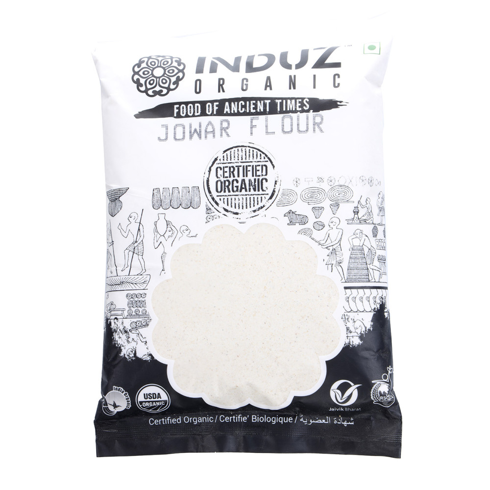 Induz Organic Jowar Flour - 500 GMS is certified Organic Jowar Flour & made from finest quality Jowar cultivated from certified Organic Farms in India. Organic Jowar Flour is 100% pure & contains all the natural benefits as it is prepared from Organic Jowar & is free from all types of impurities.