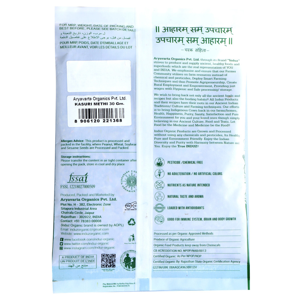 Induz Organic Kasuri Methi - 30 GMS is Certified Organic spice obtained from Organic farmlands across India. This spice is absolutely pure as it has not gone through any type of chemical processing. So this Organic Kasuri Methi adds the genuine taste & flavor in Indian cuisine.