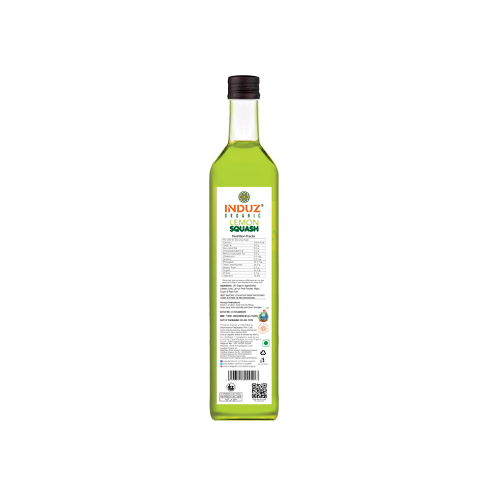 Induz Organic Lemon Squash is prepared by squeezing best quality Whole, Organic Lemons. No artificial color, sweetener or flavor added to this Induz Organic Lemon Squash; so the taste & all the nutritional benefits of Lemons is truly retained & it refreshes you in the best way.