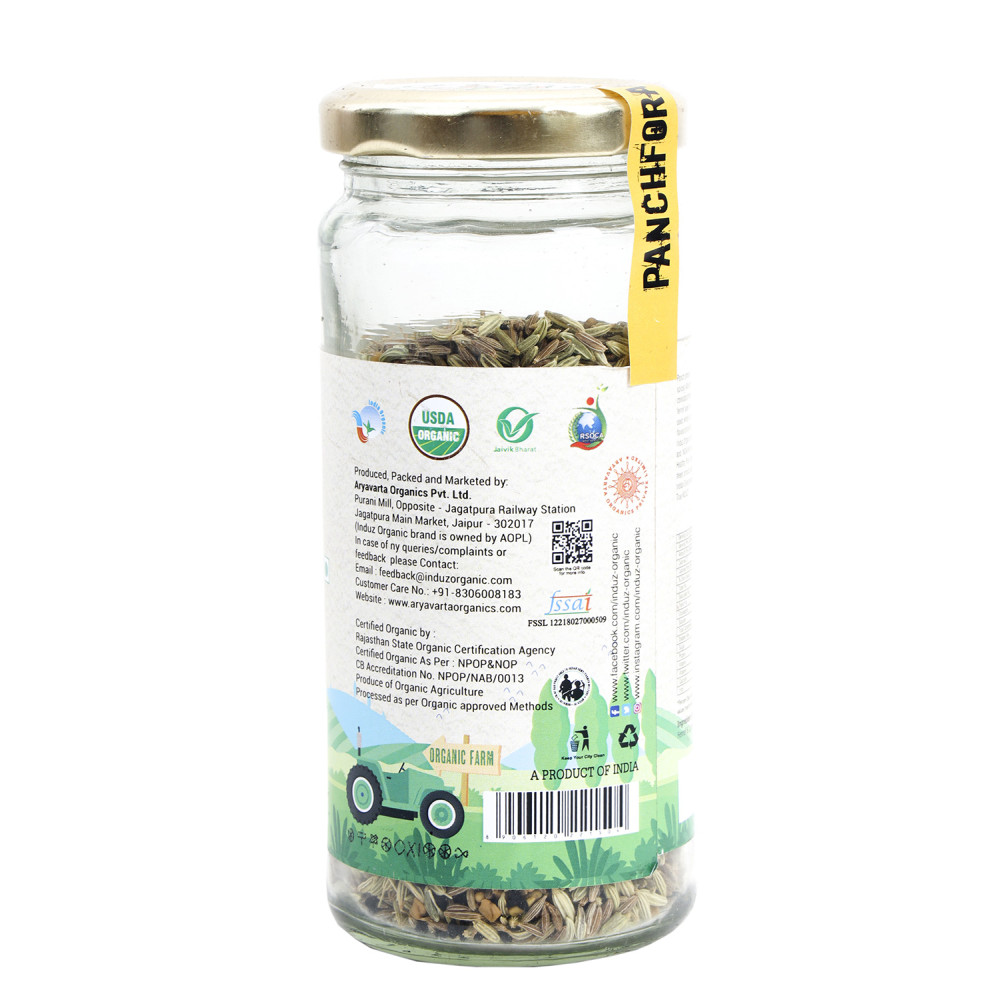 Spices & Condiments are an absolute necessary part of Indian kitchen from very earlier period. However Indian Spices have very infamous reports to be adulterated with various chemical additives like colors or artificial flavors. They spoil the real taste & benefit of that spice. So it is always recommended to pick Certified Organic Spices only. This Induz Organic Panchforan - 100 GMS is 100% Organic & Natural product & is free from any type of impurities.
