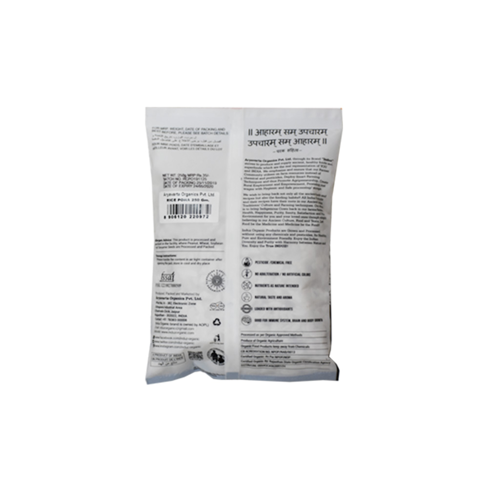 Benefits: Induz Organic Rice Poha - 250 GMS is one perfect organic, healthy & nutritious breakfast. This is good source of healthy carbohydrates. Induz Organic Rice Poha - 250 GMS is rich in dietary fibre & is a good Probiotic option. It can keep the gut healthy.