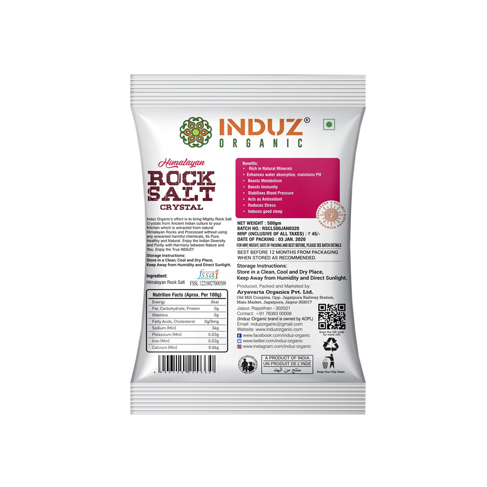 Benefits: Induz Organic Rock Salt Crystals - 500 GMS is considered the healthiest type of soil around the world. It can be used as a healthier option to processed salt. Induz Organic Rock Salt Crystals - 500 GMS contains various minerals and trace elements, including calcium, magnesium, potassium, copper and iron; so it does more than just make your food taste better.