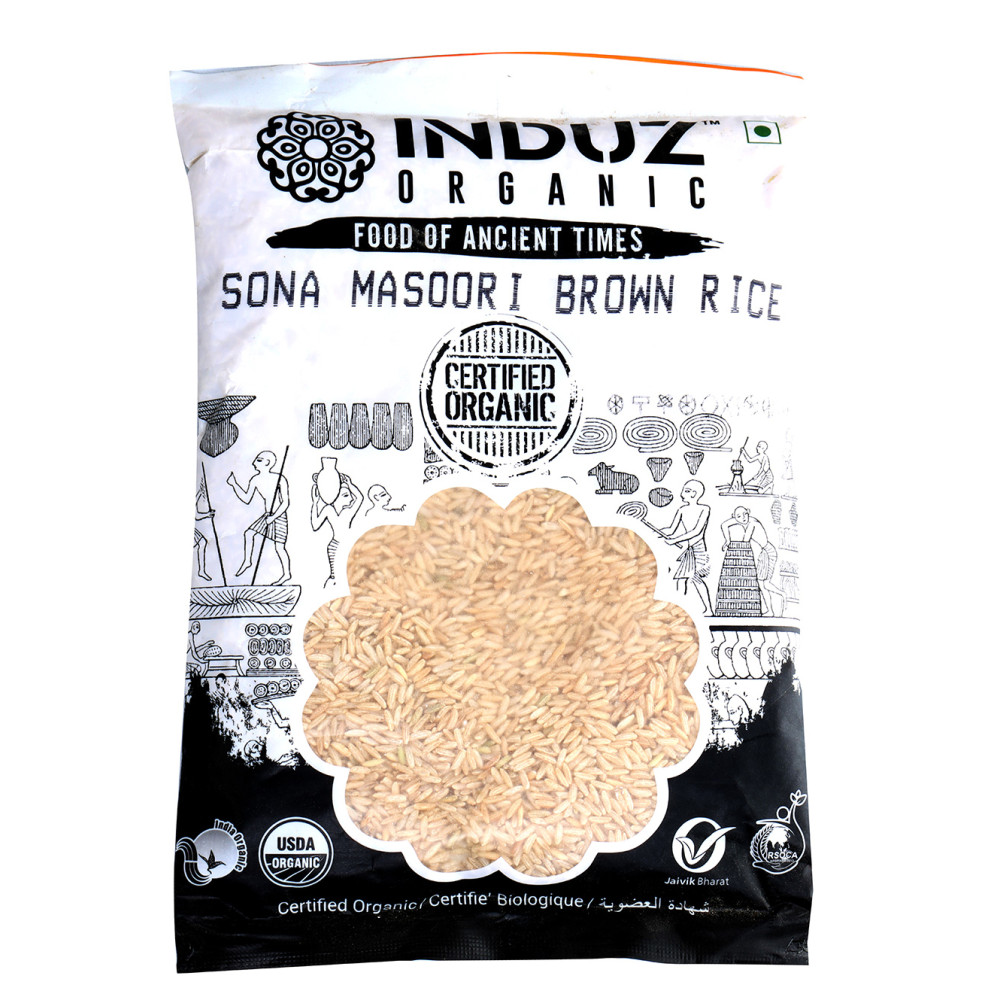 Induz Organic Sona Masoori Brown Rice - 500 GMS is absolutely Natural, Non GMO, and Certified Organic Rice. This Induz Organic Sona Masoori Brown Rice - 500 GMS has been cultivated without using any harmful chemicals, pesticides or insecticides in certified Organic Farmlands. This Organic Rice has gone through less processing; so it contains all the nutrients inside.