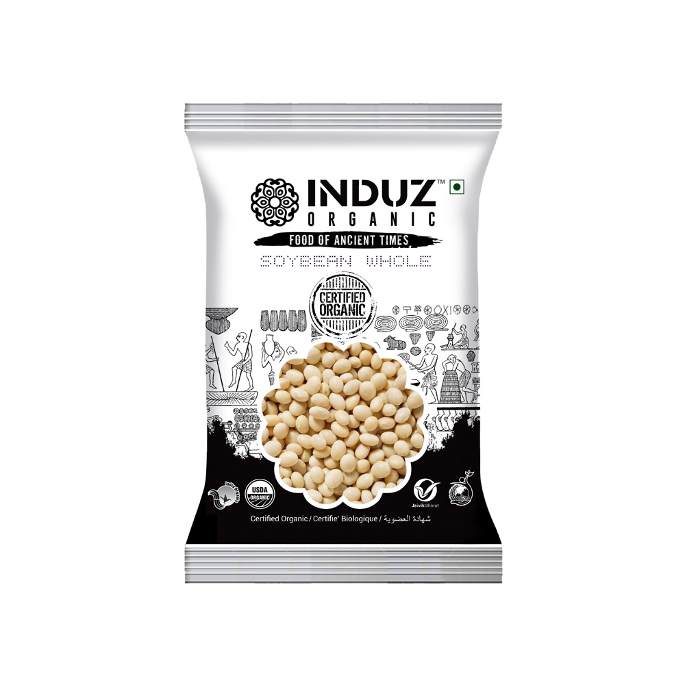 Induz Organic Soybean Whole - 500 GMS is 100% Natural, Non GMO & Certified Organic Soybean Dal - loaded with all the nutrients like Protein, Vitamin & Minerals. Induz Organic Soybean Whole - 500 GMS has been cultivated without using any type of harmful chemicals or pesticides & herbicides. So all the benefits of this pulse are intact in the pack. The Vegans must consider this Organic Soybean Seed as a pulse for all its benefits.