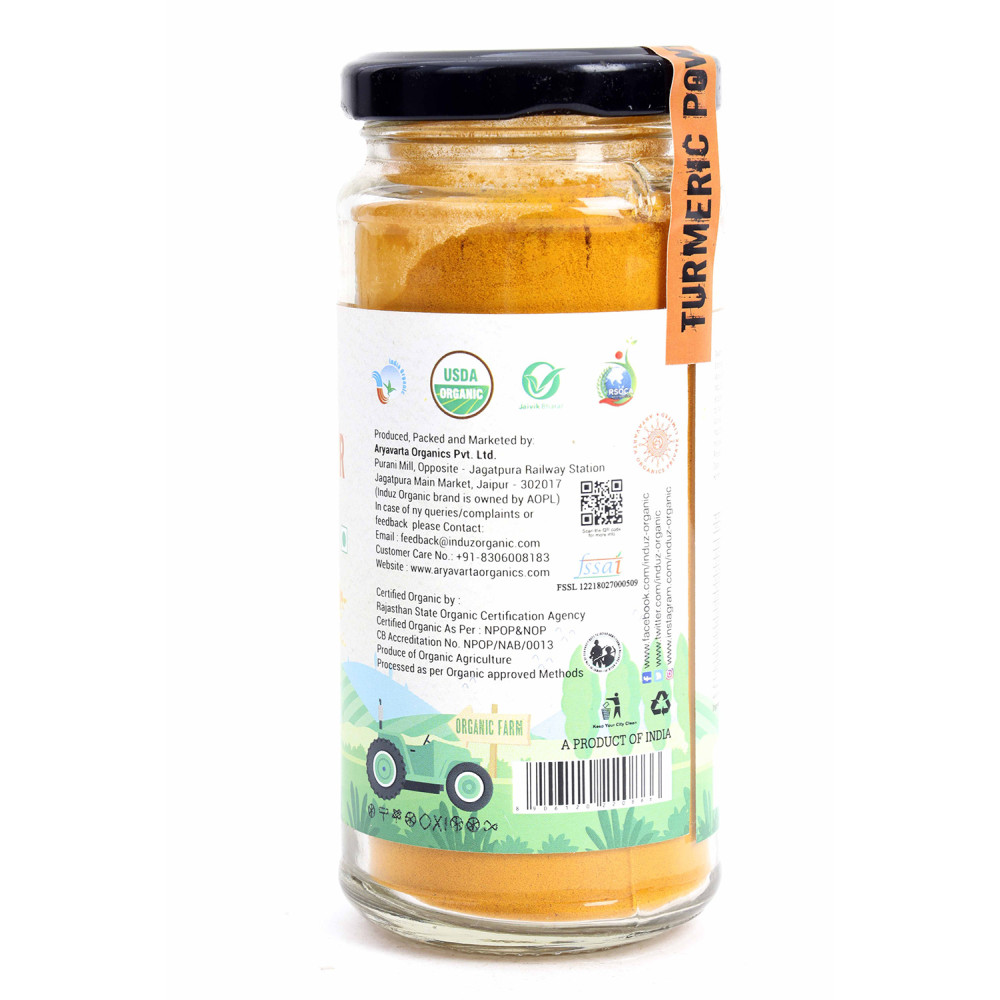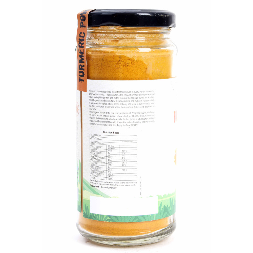 Induz Organic Turmeric Powder - 100 GMS is Certified Organic spice obtained from Organic farmlands across India. This spice is absolutely pure as it has not gone through any type of chemical processing. So this Organic Turmeric Powder adds the genuine taste & flavor in Indian cuisine.