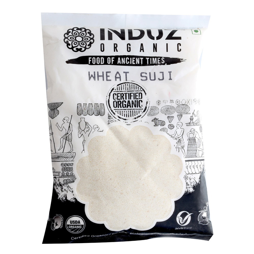 Induz Organic Wheat Suji - 500 GMS is obtained from best quality Organic Whole Wheat cultivated in Organic farmlands of India. Organic Wheat Suji is 100% pure & contains all the natural benefits as it is prepared from Organic Wheat & is free from all types of impurities.