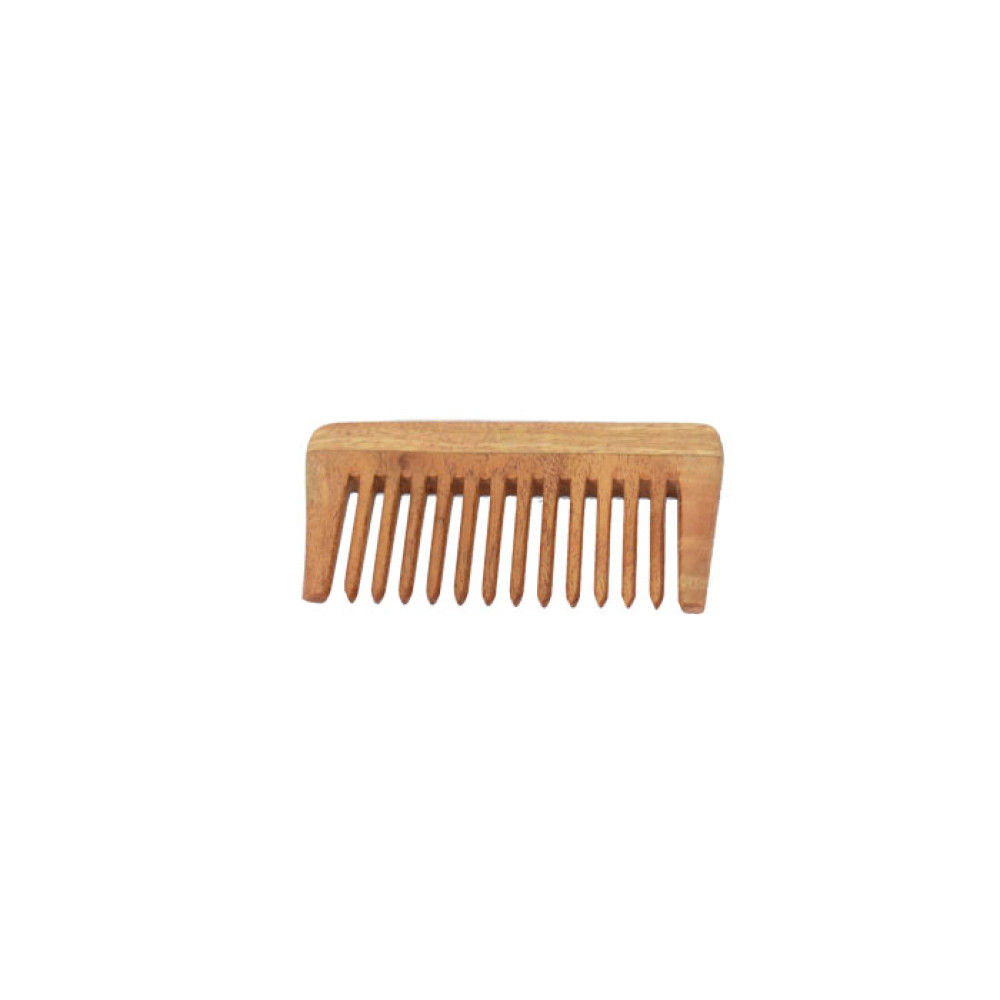 Natural Neem Wood Wide Teeth Comb - Small Size