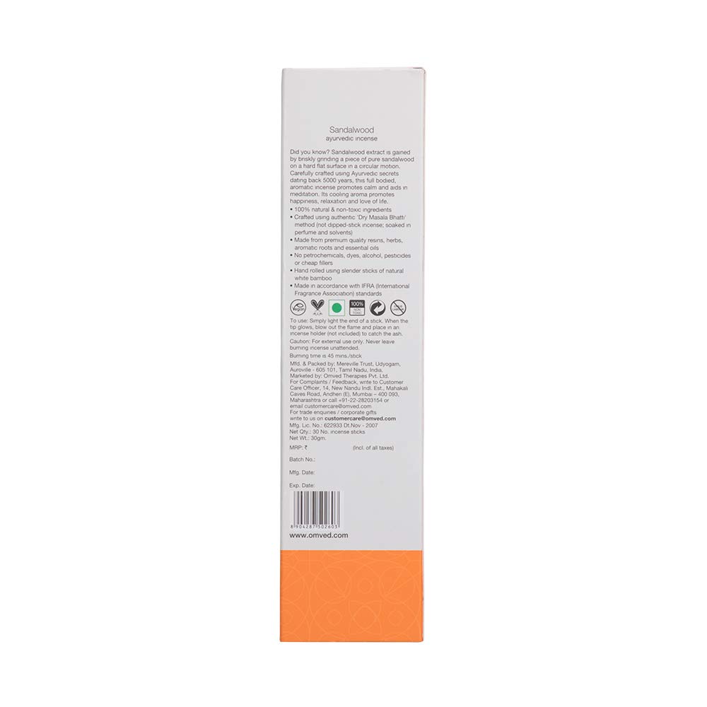 Omved Sandalwood Incense Sticks (Organic & Natural) - 30 Sticks