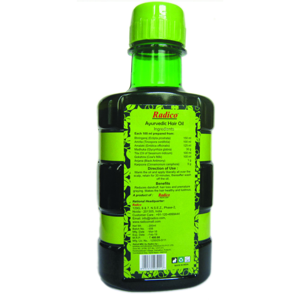 Radico Ayurvedic Hair Oil to reduce dandruff, Hair loss and premature graying. Makes the hair healthy and lustrous.