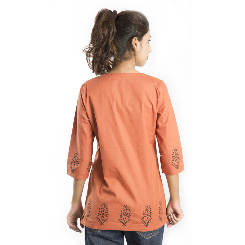 Zeme Organics 3/4th Sleeves Short Kurti - Orange